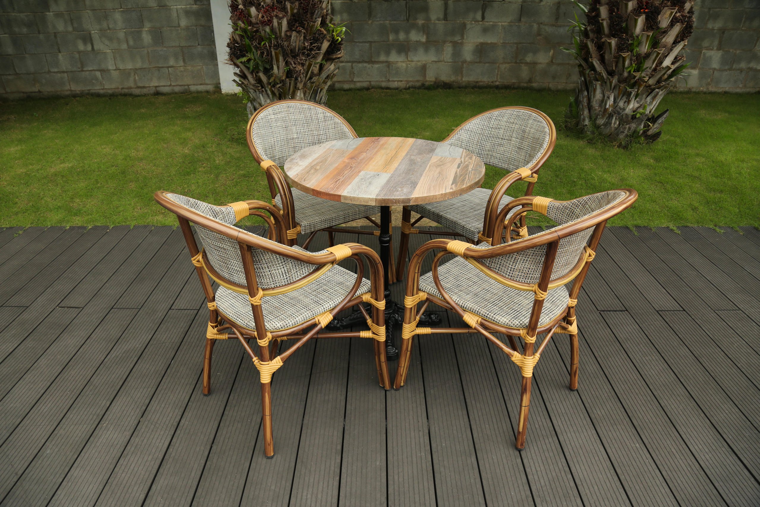 Bàn ghế cafe ngoài trời, sử dụng lưới Textilene, kết cấu khung nhôm sơn tĩnh điện