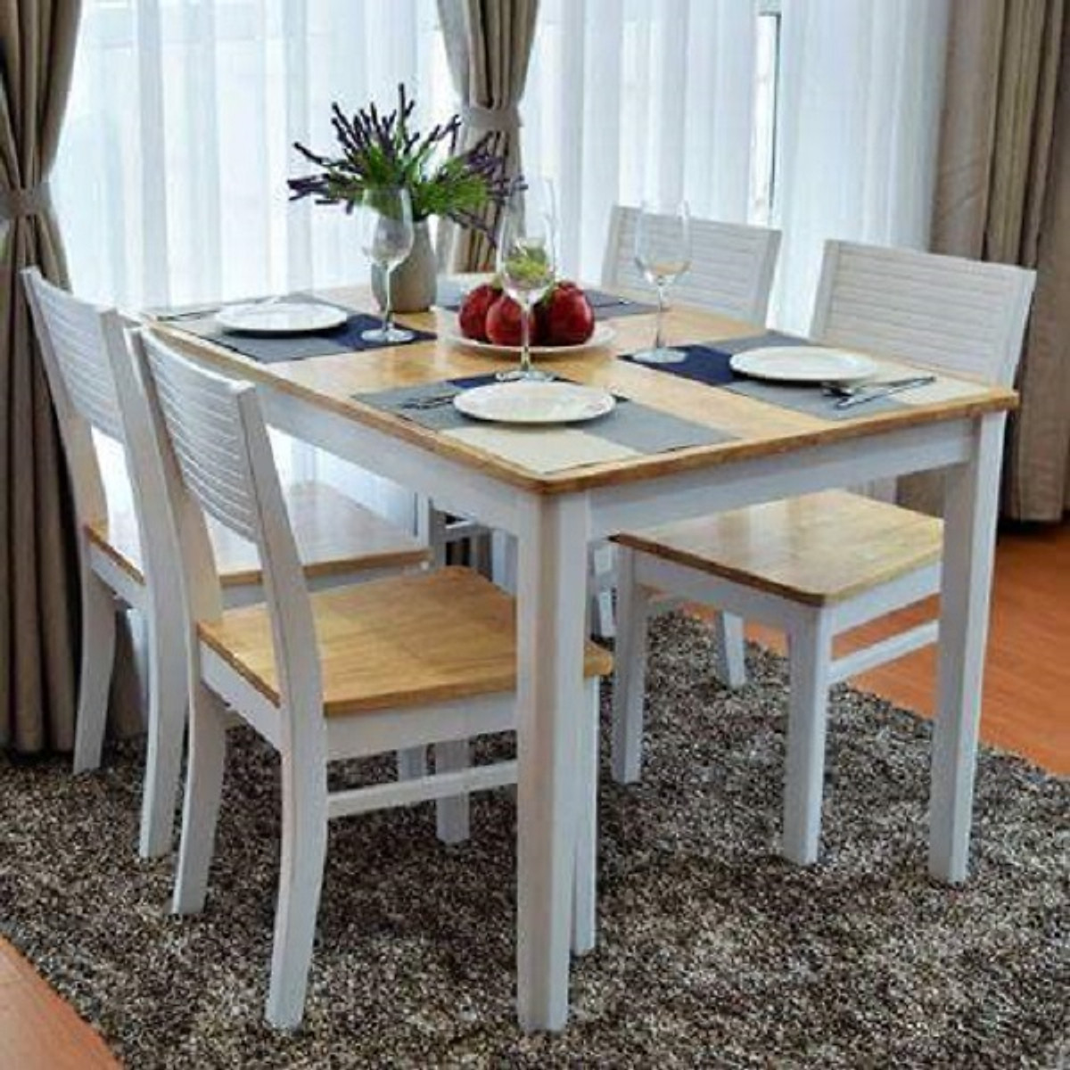 Bàn ghế phòng ăn màu trắng 1200 x 750 x 730 gồm 4 ghế